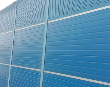 彩鋼板聲屏障是在高速上越來越多的*種聲屏障材料,彩鋼板聲屏障主要由鋼立柱和彩鋼屏體板組成,屏體板主要內(nèi)部有泡沫夾心作為吸音材料,外部是兩層彩鋼板,可以多種顏色,藍色、白色等;常常彩鋼板聲屏障與鍍鋅板聲屏障相互結(jié)合,吸音隔音結(jié)合,效果更佳!