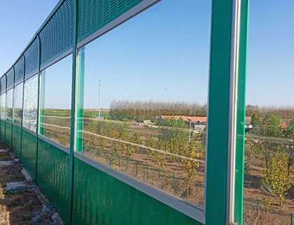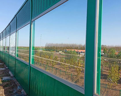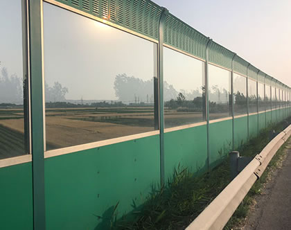 透明組合聲屏障的特點(diǎn)是框架由經(jīng)過氧化處理的鋁合金制作,且具有重量輕、強(qiáng)度高、不腐蝕、美觀等特點(diǎn)。夾膠玻璃是透明型隔音墻的主要選材,具有較強(qiáng)的安全性能和良好的透明性及耐磨性,透明組合聲屏障主要是城市風(fēng)景區(qū)或者住宅區(qū)用于隔絕臨近的城市道路交通噪聲的措施,與周邊的樹木等景觀形成*道獨(dú)特的風(fēng)景。
