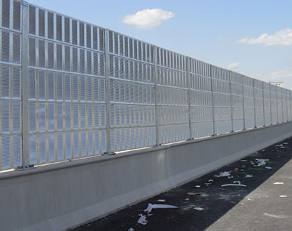 公路聲屏障的主要組成部件: 基礎(chǔ)、立柱、屏體、固定件、密封件,有的還包括頂部結(jié)構(gòu)。