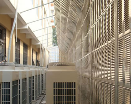 空調(diào)機組*般安裝在高層樓上或者露天平臺上,空調(diào)電機高速運行的時候無法避免的產(chǎn)生巨大的噪音;空調(diào)機組聲屏障是目前公認(rèn)的有效處理空調(diào)外機噪聲的裝置。它是用于阻斷空調(diào)外機噪聲傳播的*種有效裝置,屬于對于空調(diào)機組外噪聲控制手段。